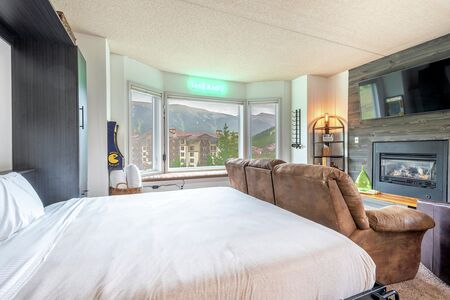 Telemark is a short four minute or two hundred and fifty yard walk to the American Flyer Lift and the Village or three hundred yards to the Union Creek high-speed quad. The studio suites at Telemark lodge Copper Mountain feature full kitchens and are ideal for those looking for economical accommodation for their next ski trip. Guests also have access to the off site Copper Mountain Athletic Club (when open) which includes a 25-yard pool, hot tubs, sauna, steam room and gym. For some units, access is complimentary and for others, a fee may be charged.